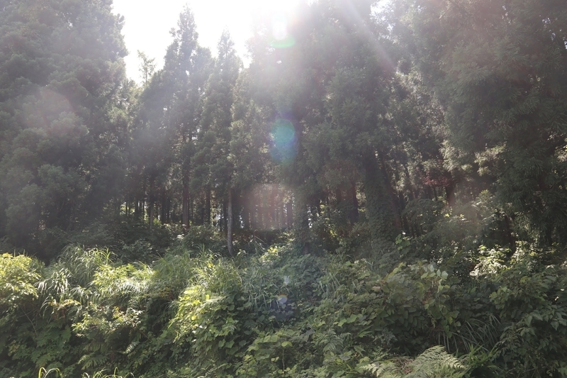 大きく響く川のせせらぎ。いろんな緑色が混在する森、田んぼ。