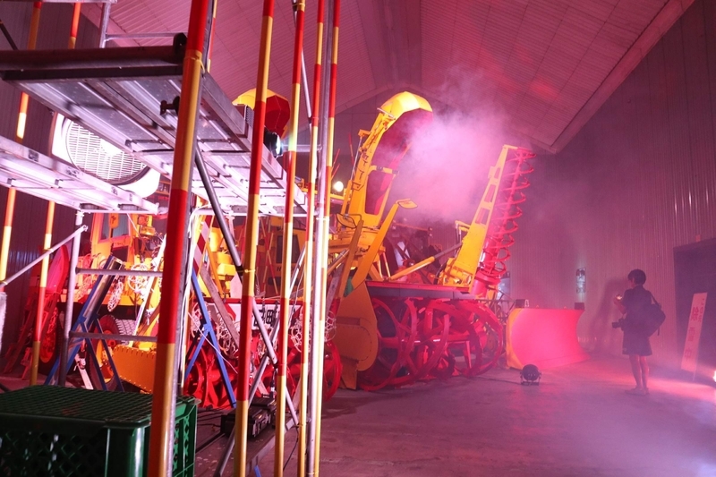 今回の芸術祭の中でも、トップレベルに好みだった作品。夏場は使われていない除雪車の保管庫を芸術作品に見立てたもので、まるで映画やSFアニメの中に入ったみたい。効果音や照明も効果的でした。