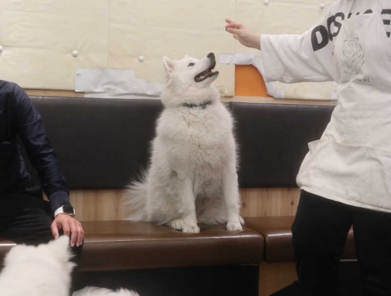 ロシア原産の、白くて大きなモフモフのワンちゃん・サモエドがたくさんいる「サモエドカフェ」。
