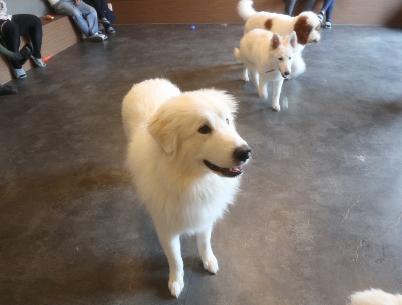 店内は広め。さまざまな犬種のワンちゃんたちが、自由に動き回っていました。